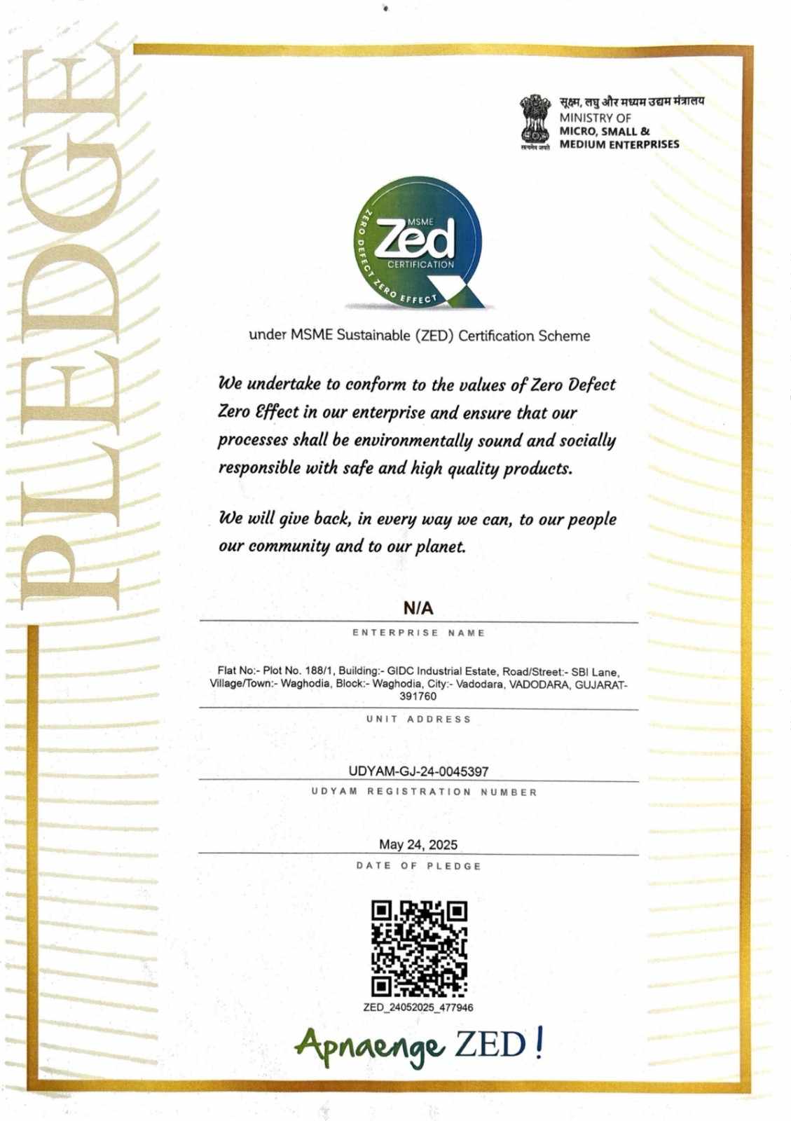 We pledge to maintain a robust Quality Management System, foster a culture of continuous improvement, and ensure the timely delivery of zero-defect products through advanced technology and skilled craftsmanship.